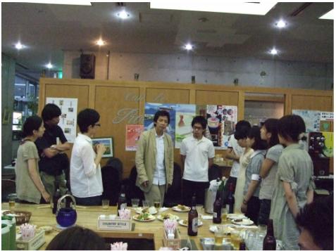 講演会後、講師を囲んでフランクに話のできる立食懇親会をもち、学生達に囲まれにぎやかなひと時を